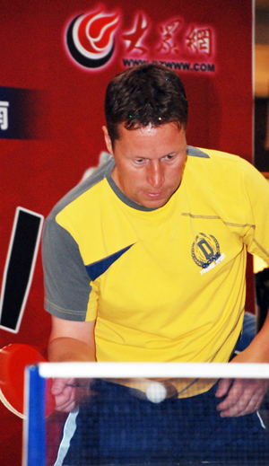 大眾網(wǎng)濟南6月20日訊 今天上午,素有“乒壇常青樹”之稱的瑞典乒乓球名將瓦爾德內(nèi)爾他作為圣象康樹品牌形象大使蒞臨濟南,和泉城球友切磋球技,親密互動。圖為瓦爾德內(nèi)爾于球迷過招。