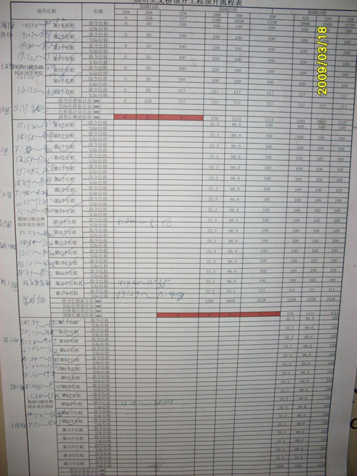 記者從施工的操作流程圖注意到,這項(xiàng)施工前后需要至少16個(gè)步驟。將上百根鐵柱一一立起并加固、將千斤頂固定在鐵柱和橋體之間、安裝控制千斤頂?shù)囊簤合到y(tǒng)、割斷橋墩后再進(jìn)行橋梁頂升和墩柱加高……