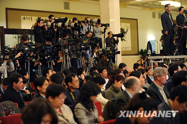3月7日,十一屆全國人大二次會議舉行記者會,外交部部長楊潔篪答記者問。新華社記者陳樹根攝