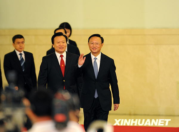 這是楊潔篪步入會場。新華社記者陳樹根攝