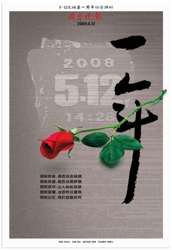 為大力宣傳全國人民弘揚(yáng)抗震救災(zāi)精神,重建美好家園的突出成績和精神面貌,全景展現(xiàn)抗震救災(zāi)和災(zāi)后重建的偉大歷程,國務(wù)院新聞辦公室網(wǎng)絡(luò)局和四川省委宣傳部、四川省人民政府新聞辦公室指導(dǎo)包括中國新聞網(wǎng)在內(nèi)的部分具有新聞登載資質(zhì)網(wǎng)站共同舉辦“我的5.12”網(wǎng)絡(luò)作品大賽。 作品征集日期: 2009年4月28日至6月10日