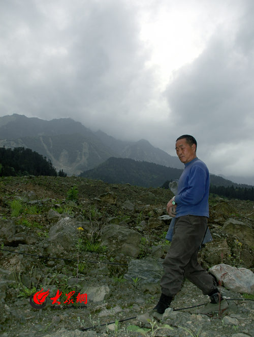 大眾網(wǎng)彭州4月26日訊(特派記者 趙爾印)耐心地等待鏟車、挖掘機等設備清理完堵在路中央的山體滑坡堆積物,采訪團一行終于來到謝家店子村。這里是5.12地震龍門山斷裂帶途經(jīng)之地。根據(jù)當?shù)匦掖嬲叩幕貞洠迦种还?8戶居民頃刻間被大地吞沒,從地下迸出來的碎石和渣土掩埋了民居和前來觀光旅游地部分游人。48戶村民當時只有祖孫二人跑了出來,另有一人被救。