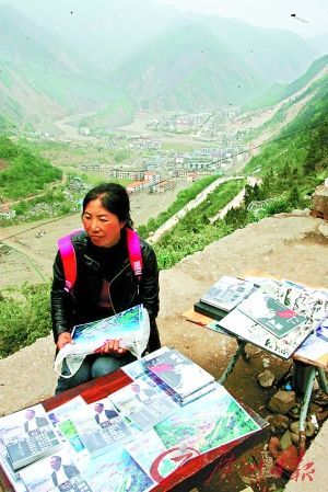 在漢旺鎮(zhèn)老城,與當(dāng)?shù)卣舫龅木渚不到20米,當(dāng)?shù)厝死虾闻c妻子開(kāi)了一個(gè)專門(mén)售賣(mài)地震紀(jì)念品的貨攤,上面有畫(huà)冊(cè)、DVD、VCD等,他對(duì)記者稱,地震后,有人注意到了游客大量涌入災(zāi)區(qū),于是制作出了這些相關(guān)產(chǎn)品,這些都是當(dāng)時(shí)當(dāng)?shù)厝俗约号南聛?lái)的鏡頭制作成的,對(duì)游客來(lái)說(shuō),這是非常真實(shí)的見(jiàn)證。現(xiàn)在每天來(lái)這里的游客幾乎鮮有空手而歸的,一個(gè)月六七百元的收入不成問(wèn)題。