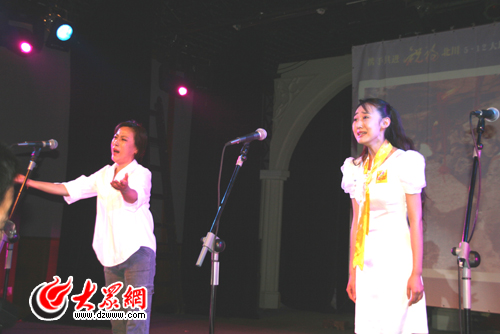 大眾網濟南5月12日訊記者 吳哲)“攜手同行 祝福北川--5.12大地震1周年詠思祈福會”在山東省話劇院上演。一小時的文藝表演給在場觀眾留下了深刻的印象,特別是由省話劇院演員王美、李婧演繹的詩朗誦《孩子快抓緊媽媽的手》真摯感人,引得臺下觀眾淚流滿面。