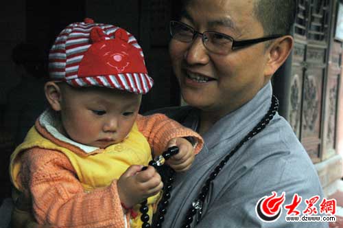 大眾網4月28日訊(特派記者 趙爾印)5月13日,什邡市將為地震災區(qū)出生在羅漢寺內的108名地震寶寶慶生,舉行抓周活動。據(jù)了解,去年地震發(fā)生后,什邡保健醫(yī)院被迫將待產孕婦轉移到羅漢寺,從5月13日震區(qū)第一位地震寶寶降生在寺廟后,截止到8月7日保健醫(yī)院搬進板房,期間共有108名嬰兒降生。羅漢寺住持素全法師認為:“新生命代表著希望,他們的到來給其他人帶來了歡樂。”記者近日來到什邡市羅漢寺,對素全法師進行了專訪。