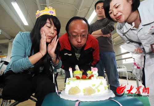 大眾網4月28日訊(特派記者 趙爾印)大家還記得那個在地震中聽著手機音樂挺過70個小時的勇敢、樂觀和善良的高一女孩卿靜雯嗎?4月30日,她在綿竹人民醫院康復中心度過了自己的18歲生日。