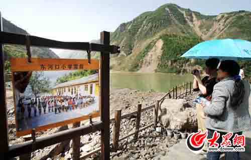 “千里悲風龍門山,萬眾生靈瞬時休;汶川地震何慘烈,請君看看東河口”。2008年11月16日,四川省作協副主席、省文藝評論家協會協會主席、茅盾文學獎評委何開四在青川縣東河口參觀完地震遺址公園后,奮筆題詩一首。有人告訴記者,這里是全球最壯觀、最慘烈的地球應力爆發形成的地震遺址群,這個群方圓50平方公里,重點遺址群集中面積約30平方公里,涵蓋了崩塌、地裂、隆起、斷層、褶皺、堰塞湖等多種地質改變形態。