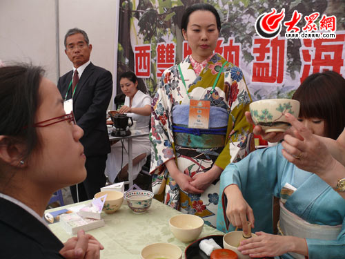 大眾網濟南5月22日訊 (記者 李冉 實習生 王磊)在今天的茶博會上,除了北川茶廣受市民選購外,另一亮點就是日本友人的茶藝表演。記者在現場切身體驗了一回日本茶道。