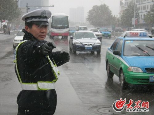 德州交警冒雪執(zhí)勤 王洪嶺攝