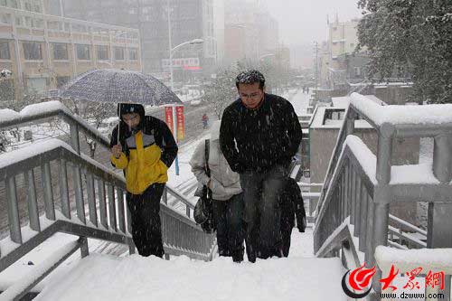 早上7.30,山大北路過(guò)街天橋上滿是落雪