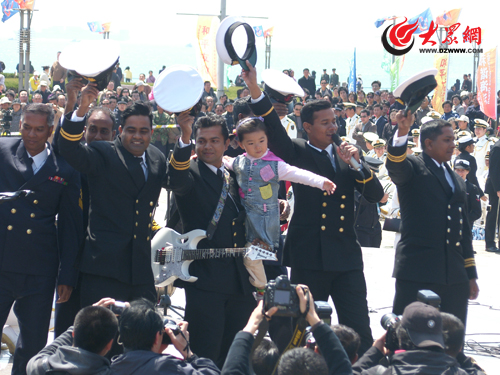 大眾網青島4月21日訊(特派記者 馮煒程)“沒有什么能夠阻擋,你對自由的向往……”,21日上午,當孟加拉海軍士兵用并不熟練的漢語唱出許巍的這首《藍蓮花》時,在場的數千中國觀眾幾乎同時做出了驚奇又感動的表情,因為他們沒有想到這樣一首連很多中國人都并不熟知的流行歌曲會從孟加拉士兵嘴中吟唱出來,而且唱得那么投入。