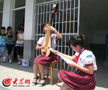 “佳佳love”給小朋友帶來本子和豎笛(圖)