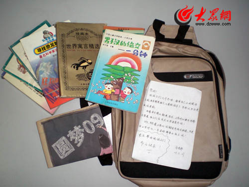 德州學(xué)院許巧玥寄來書包和各種書籍和鋼筆(圖)