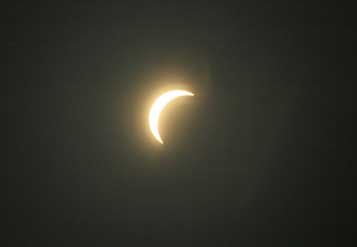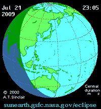 日食帶 由于月亮的影錐又細又長,所以當它落到地球表面時,所占的面積很小,它的直徑最大也只有二百六十多千米。當月球繞地球轉動時,影錐就在地面上自西向東掃過一段比較長的地帶,在月影掃過的地帶,就都可以看見日食。這條帶就叫做“日食帶”。
