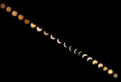 當最后一點光球消失時,美麗的內冕將在月亮周圍形成一道帶有一顆閃耀的白色寶石的光環。