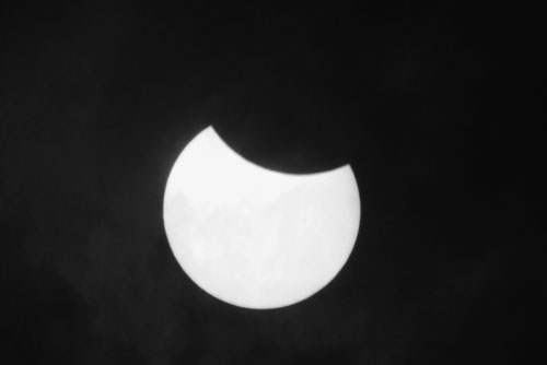 日食發生時,陽光會穿過樹葉之間的孔隙在地面形成斑斑駁駁的圖案。