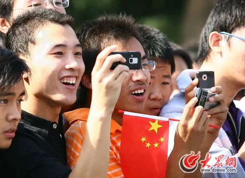 大眾網濰坊9月22日訊 今天,一個陽光明媚的金秋時節(jié),濰坊市迎來了全運火炬,這也是火炬?zhèn)鬟f山東省第四站。上午九點,啟動儀式在濰坊市人民廣場舉行,有90名火炬手參加了火炬?zhèn)鬟f,傳遞路線主要在勝利街進行。第一棒火炬手是奧運冠軍林偉寧,有近10萬市民在道路兩側夾道歡迎火炬手,為他們搖旗吶喊。