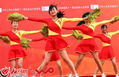 大眾網萊蕪訊 10月13日,“鋼城”萊蕪市會展中心廣場,全運火炬傳遞省內第十五站啟動儀式在這里舉行。儀式前,進行了墊場表演,健身秧歌、街舞、啦啦操和健身球,演員的表演不是得到在場觀眾的陣陣掌聲,也為火炬傳遞增色不少。上午9點,儀式開始。萊蕪市市長馬平昌致辭,在萊蕪市市委書記于建成和市體育局局長亓京云分別展示火炬后,第一棒火炬手王守東開始了傳遞。據了解,當天的火炬傳遞路程有3公里,火炬手是68名。10月14日,火炬傳遞將移師泰安。(王宏光 攝影報道)