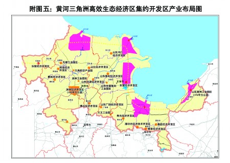 黃河三角洲高效生態經濟區集約開發區產業布局圖。 |