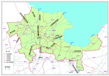 黃河三角洲高效生態(tài)經(jīng)濟區(qū)鐵路規(guī)劃示意圖。 |