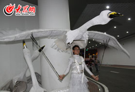 | 在空竹與風箏一節(jié)中,熠熠閃著綠光的大輪車飛馳... |