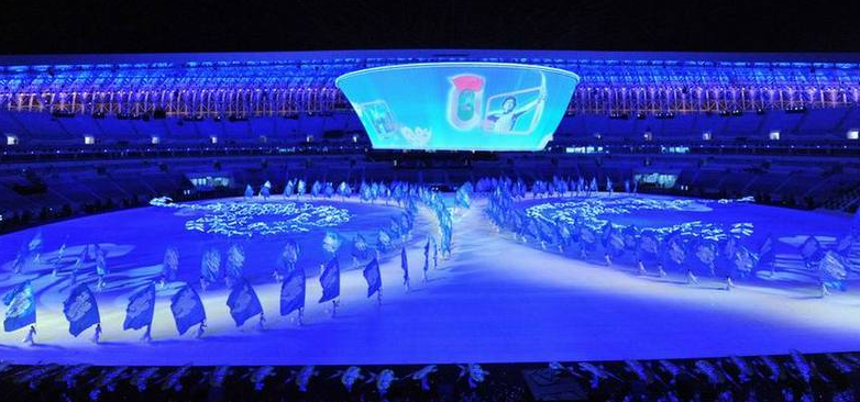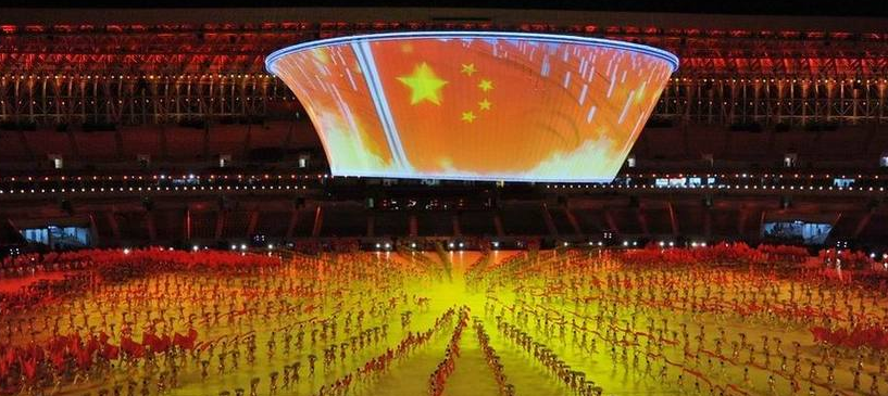2009年10月13日,中國山東濟南,09全運會開幕式在夜間舉行帶妝彩排。開幕式分為山東特色、全民全運、新中國六十年成果展示三大部分。巍峨泰山的崛起、圣人孔子的誕生、黃河入海的氣勢,這些獨具山東特色的元素將在開幕式上一一展示。