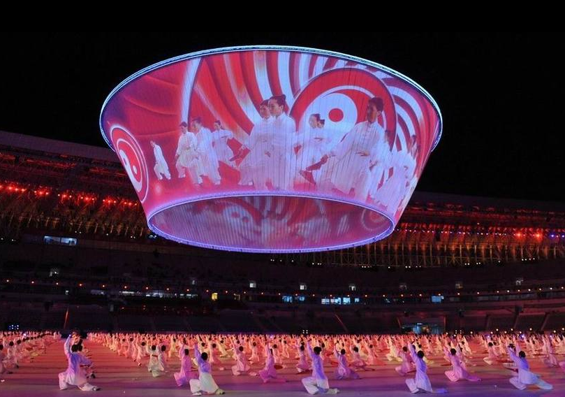 2009年10月13日,中國山東濟南,09全運會開幕式在夜間舉行帶妝彩排。開幕式分為山東特色、全民全運、新中國六十年成果展示三大部分。巍峨泰山的崛起、圣人孔子的誕生、黃河入海的氣勢,這些獨具山東特色的元素將在開幕式上一一展示。