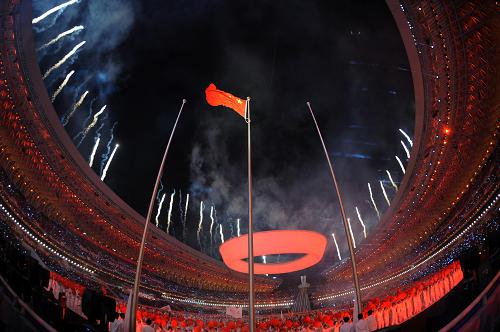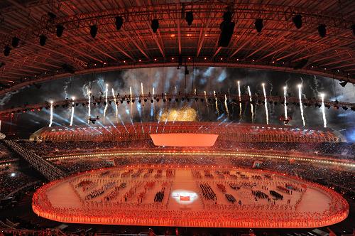 開幕式現(xiàn)場的焰火表演。
