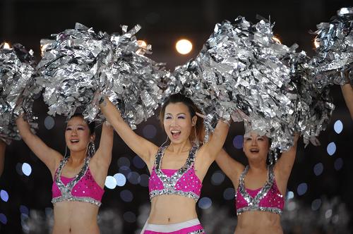 10月16日晚,第十一屆全國運動會開幕式在濟南舉行。這是開幕式上的拉拉隊隊員。
