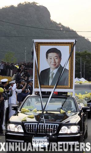 5月29日清晨,韓國前總統盧武鉉的靈車從他的家鄉慶尚南道金海市峰下村出發,前往位于首爾市中心的景福宮。盧武鉉遺體告別儀式將在景福宮舉行。新華社/路透