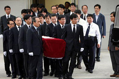 盧武鉉的遺體被運送回家鄉(xiāng)
