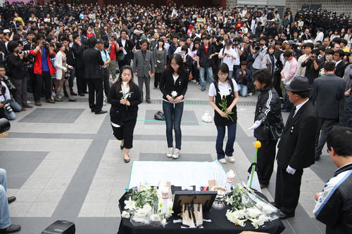 韓國總統(tǒng)李明博出席盧武鉉遺...