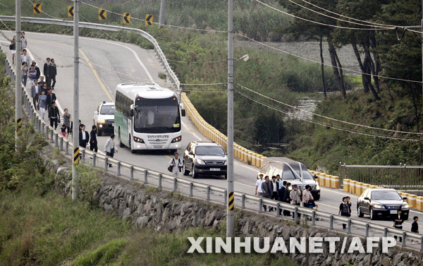23日清晨登山時墜落死亡的韓國前總統(tǒng)盧武鉉的遺體當天傍晚被運送回他的家鄉(xiāng)慶尚南道金海市峰下村。新華社/法新