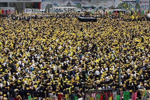 韓國首爾廣場,擠滿路祭前總統盧武鉉的民眾。