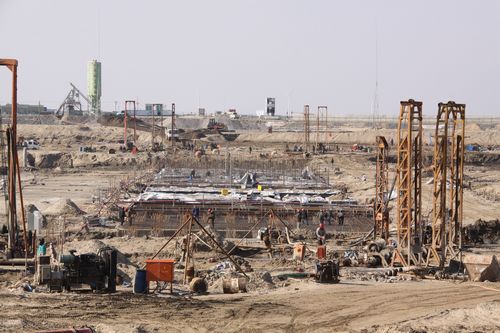 濰坊中心城區與濰坊新城區之間的中軸線上,曾是一片廣袤荒涼的鹽堿地,如今這里已變成熱火朝天的建設工地,一座濱海水城將從這里拔地而起。施工現場的規劃圖上清晰的勾勒出濱海水城的藍圖:6平方公里的中央商務區、25平方公里高檔商住區、50平方公里的科教創新區、60平方公里的旅游度假區。