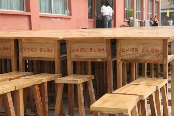 圖為濟寧市福彩中心為汶上縣寅寺鎮栓莊小學捐贈的300套課桌凳