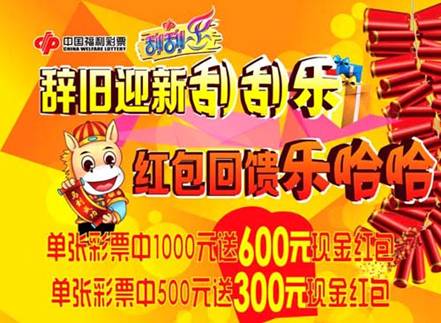 從1月22日(農歷臘月二十二)零時起至2014年2月21日(農歷正月二十二)24時止,凡在淄博市內任意銷售站點購買面值2元、5元的“刮刮樂”即開型彩票,單張彩票刮中1000元獎金者送600元現金紅包;單張彩票刮中500元獎金者送300元現金紅包;同時再獎勵售票銷售員20元的“刮刮樂”彩票(票種不限)。