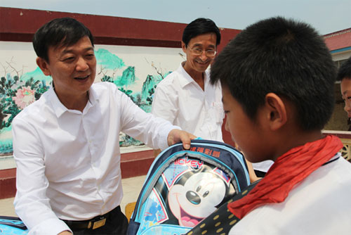 圖三 福彩中心主任柳建軍為孩子們贈送學習用品