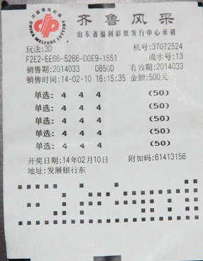 2月10日,2014033期3D開獎,開出號碼為豹子444,號碼一出,憨憨的李先生笑了。