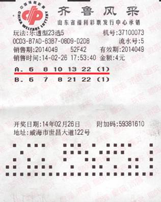 2月26日,齊魯風采23選5游戲第2014049期開獎,當期僅開出1注一等獎,被威海市彩友斬獲。該幸運彩友在位于世昌大道122號的37100073號投注站采用機選單式的投注方式中得23選5一等獎1注,單注獎金達到38346元,讓人不得不羨慕他如此好的運氣。