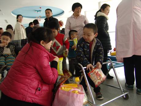在福利院肖培賢院長(zhǎng)的帶領(lǐng)下,大家參觀了福利院的康復(fù)室、活動(dòng)室、圖書室及嬰幼兒室。女員工代表為小朋友們準(zhǔn)備了喜歡的食品和玩具,關(guān)心問(wèn)候孩子們的生活狀況,孩子們也表演了平日里學(xué)會(huì)的歌曲和舞蹈,她們的到來(lái)使孩子們感受到了溫暖快樂(lè)。這些孩子是不幸的,但同時(shí)他們也是幸運(yùn)的,因?yàn)樗麄兊玫搅巳鐣?huì)的關(guān)懷,得到了福利彩票公益金的支持,關(guān)心孤殘兒童既是福彩的責(zé)任,也是社會(huì)的責(zé)任,這是社會(huì)主義優(yōu)越性的充分體現(xiàn)。最后,大家祝愿孩子們?cè)缛湛祻?fù)、快樂(lè)生活,同時(shí),也向市福利院的工作人員表達(dá)了敬意。
