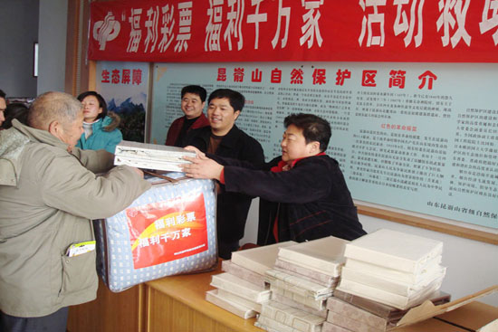 2007年春節(jié)期間煙臺福彩為低保戶送去了棉被