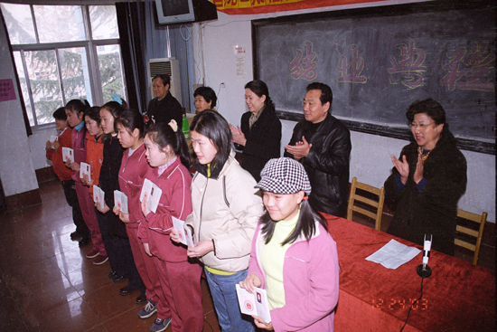 2003年12月,第二期“福彩牽手春蕾女童”技術(shù)培訓(xùn)班結(jié)業(yè)