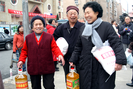 2006年福彩春節送溫暖困難者高興地領到救助物資