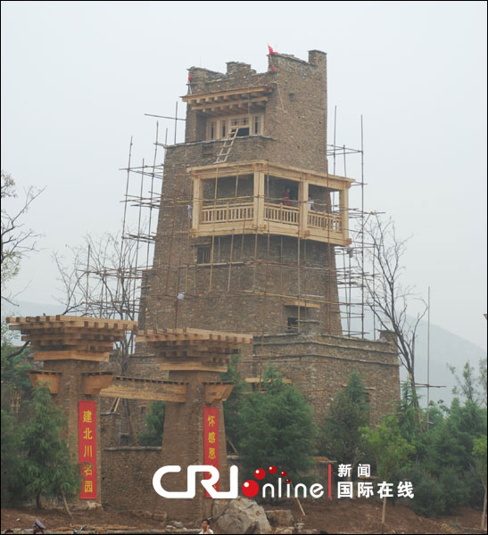 修建中的北川園——每一塊石頭均來自北川