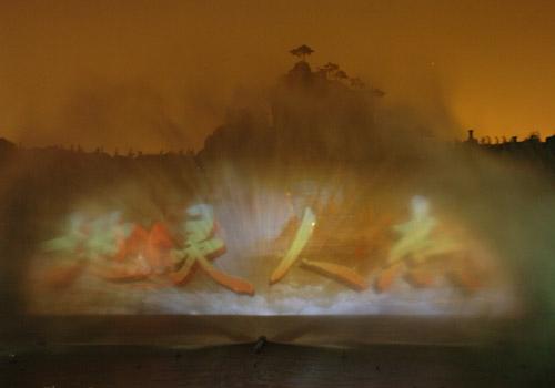 記者在現(xiàn)場看到,演出以噴泉水幕為屏幕,隨著巨大的水幕騰空而起,華美的燈光開始變幻,演員們身著華服出現(xiàn)在6000余平方米的舞臺上,伴隨著悠揚親切的歌聲翩翩起舞。在《沂蒙小調》歌舞表演之后,《地靈人杰》、《熱土情深》等表演依次亮相,為觀眾們帶來了一場絢麗壯觀、唯美抒情的視覺盛宴。