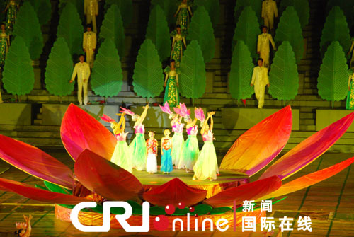 除了精彩的歌舞表演,現(xiàn)場(chǎng)的燈光也十分絢麗,激光燈的編織效果使夜色中的湖心島披上了如夢(mèng)如幻的色彩。同時(shí),燈光在舞臺(tái)上做出的微波蕩漾的藍(lán)色水面,更增加了奇妙感。