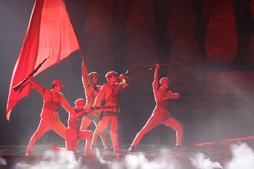 記者在現(xiàn)場了解到,大型水上實景演出《蒙山沂水》具有三大看點。首先這是國內(nèi)第一部水上紅色文化大典。臨沂是著名革命老區(qū),與井岡山、延安等革命老區(qū)相比,臨沂的紅色文化更具有唯一性,是人民群眾“愛黨愛軍、無私奉獻(xiàn)”的最好體現(xiàn)。《蒙山沂水》集中展現(xiàn)紅色文化,把“百萬人擁軍支前、十萬人血灑疆場”的許多經(jīng)典故事搬上了舞臺,將膾炙人口的《沂蒙山小調(diào)》貫穿始終,給人一種“小調(diào)唱大歌”的強烈聽覺沖擊。