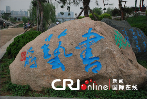 上午,記者在導游的指引下來到了臨沂市著名的文化景觀——中國書法城。大家首先參觀了迎賓門書法精品展示區,其 濃郁的書法氛一開始便將大家引入一個書法的海洋。隨后,在主體展區,采用不同材質、顏色、形式的自然石、疊石等石刻 載體展示中國書法發展歷史的表現手法更是引起了大家不小的驚嘆。而最令大家拍手稱贊的是書法城“中國版圖”的設計理 念。