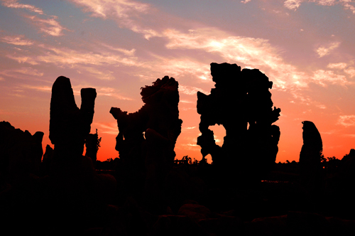 沂蒙石林號稱“北國石林”,是全國農(nóng)業(yè)旅游示范點、國家地質(zhì)公園。位于費縣城南玉環(huán)山麓、溫涼河畔,是集奇石異巖、梨園風(fēng)光、佛教文化與一體的絕景。沂蒙石林占地面積1500畝,以文韜武略為主線,安裝精品石4000余塊,再現(xiàn)了光輝燦爛的人類文化:九龍廣場——龍生九子栩栩如生,好漢歌——梁山好漢沙場點兵,火炬林——沂蒙革命圣火經(jīng)久不息,地下石林、石海——再現(xiàn)了宏達的海底化石奇觀,生肖園——人類生命觀感天人合一,石林湖——綠波萬頃,以及石林山莊、石林采摘園等。以其獨特的造型、宏大的規(guī)模、雄壯的氣勢,被譽為世紀(jì)之交中國北方發(fā)現(xiàn)的最偉大的自然奇跡。 |